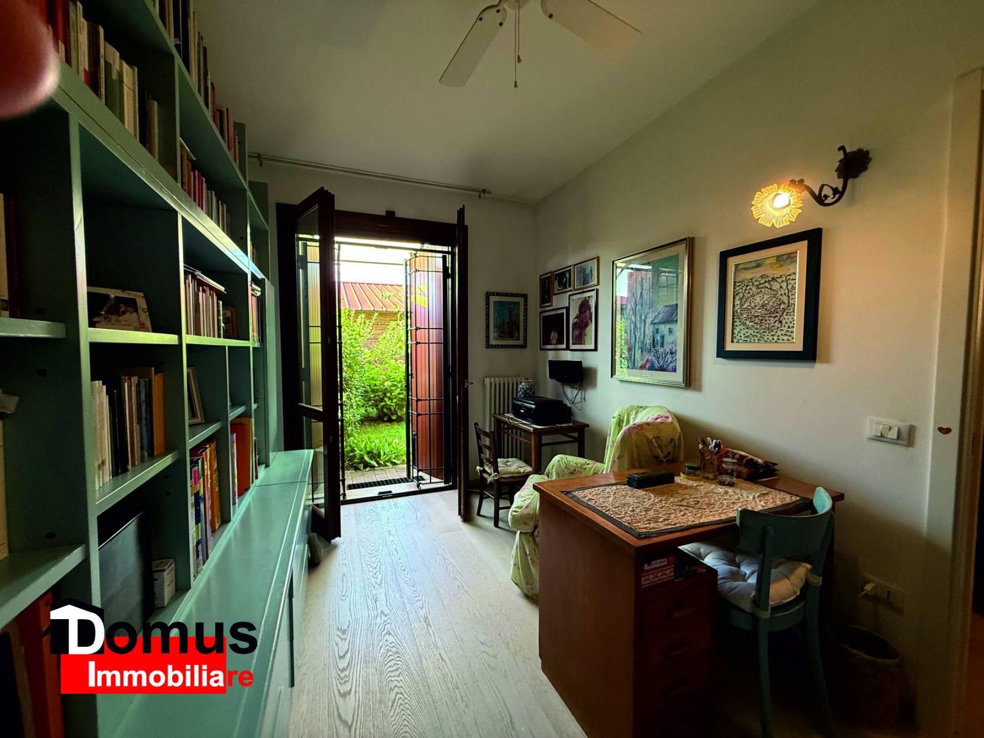 Ferrara - LOCALITA' SAN MARTINO vendiamo, in elegante residence di recente costruzione, luminoso appartamento al piano terra, dotato di giardino esclusivo di ca. 300 mq. su due lati. L'immobile è composto da ingresso, soggiorno con affaccio sullo splendido giardino piantumato, cucina a vista, disimpegno notte dal quale si accede alle 3 camere da letto, ampio studio, ripostiglio, due bagni. Completa la proprietà ampio garage. Riscaldamento autonomo e impianto di climatizzazione. Classe energetica D (94,40). Rif. A/12 - Per info e visite contattare il 347 8750369