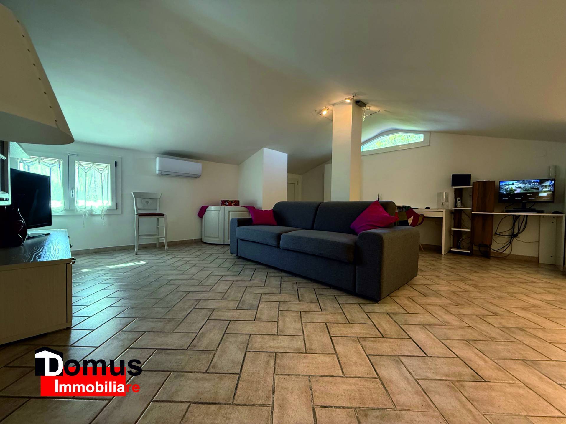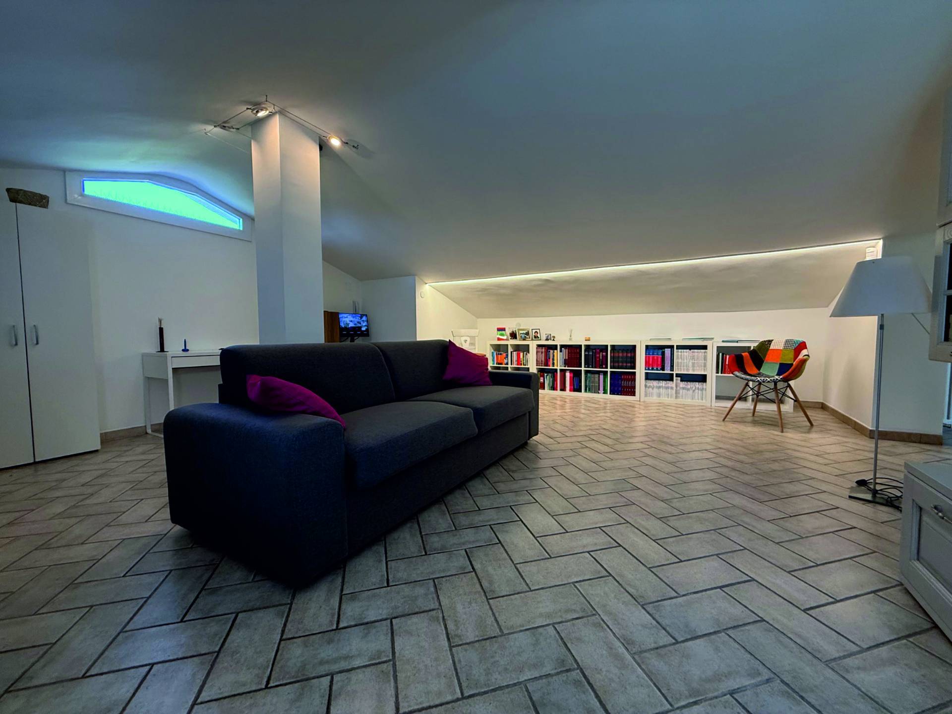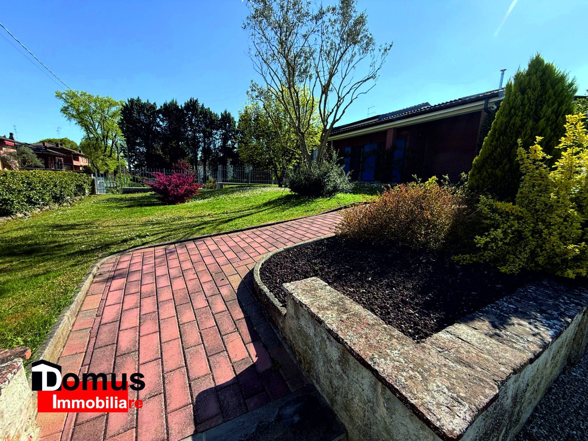 Disposto su tre livelli l'immobile è composto da ampio ingresso, spazioso salone articolato in diversi ambienti, tutti con affaccio sul giardino e sul porticato adiacente, cucina abitabile con office/ambiente di servizio lavanderia e balcone; il disimpegno notte padronale permette di accedere ad una tranquilla camera matrimoniale con guardaroba e bagno; al livello superiore ampia e luminosa mansarda utilizzabile come camera da letto o studio, alla quale sono abbinati bagno con doccia ed ampi ripostigli.